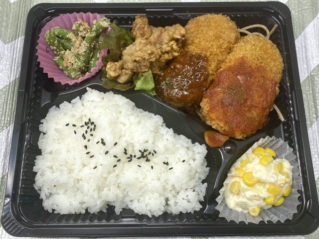 ご飯の量が多く、揚げ物なども入っているので、食べ応えがあります。