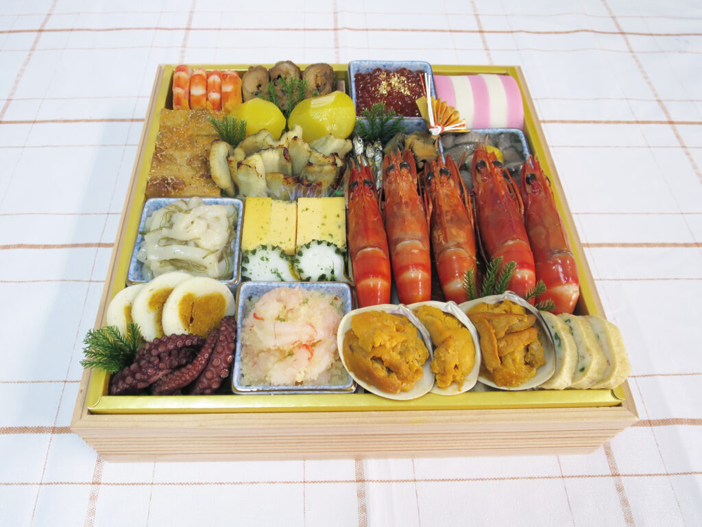 美しい盛り付けと色彩豊かな食材が、新年の食卓を華やかに彩ります。